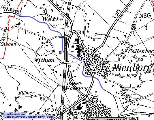 Die Gewässerstrecke von rund 8km reicht von der Ortsgrenze Heek bis zur Ortsgenze Epe (10 KV Leitung).